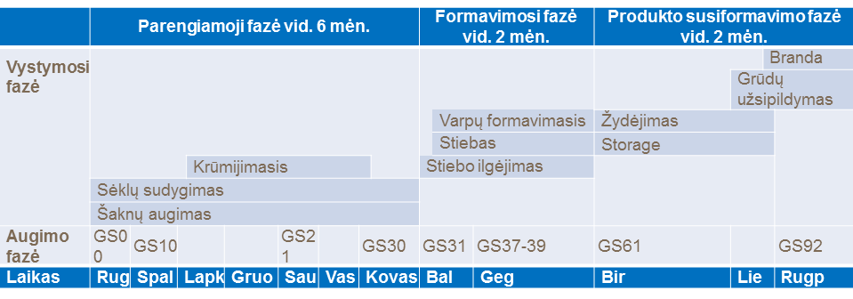 Formavimosi etapas prasideda nuo pirmojo aptikto bamblio iki žydėjimo tarpsnio. Tai kritinis, labai svarbus augimo laikotarpis, kadangi formuojasi pasėlių produktyvumą lemiančios augalo dalys – lapai, gilios stiprios šaknys, produktyvūs stiebai ir žiedynai. Šiame laikotarpyje lapija bus išsivysčiusi ir galės perimti 95% gautos fotosintetinės aktyvios radiacijos (FAR liet. –PAR angl.). Spartaus augimo ir vystymosi fazėje būna labai didelis dienos maisto medžiagų poreikis. Ši fazė dažnai yra vadinama aktyvaus augimo faze.