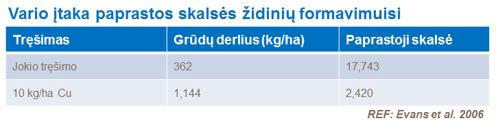 Pasėlių tręšimas cinko trąšomis efektyviai padidina augalų atsparumą javų amaro (Rhizoctonia cerealis) infekcijoms, tuo tarpu vario trūkumas gali būti augalų su kuokeliniais žiedais nevaisingumo priežastis, o tuščiose grūdų užuomazgų vietose formuojasi paprastosios skalsės židiniai. Nors paprastai, avižų pasėliams paprastosios skalsės nebūdingos.