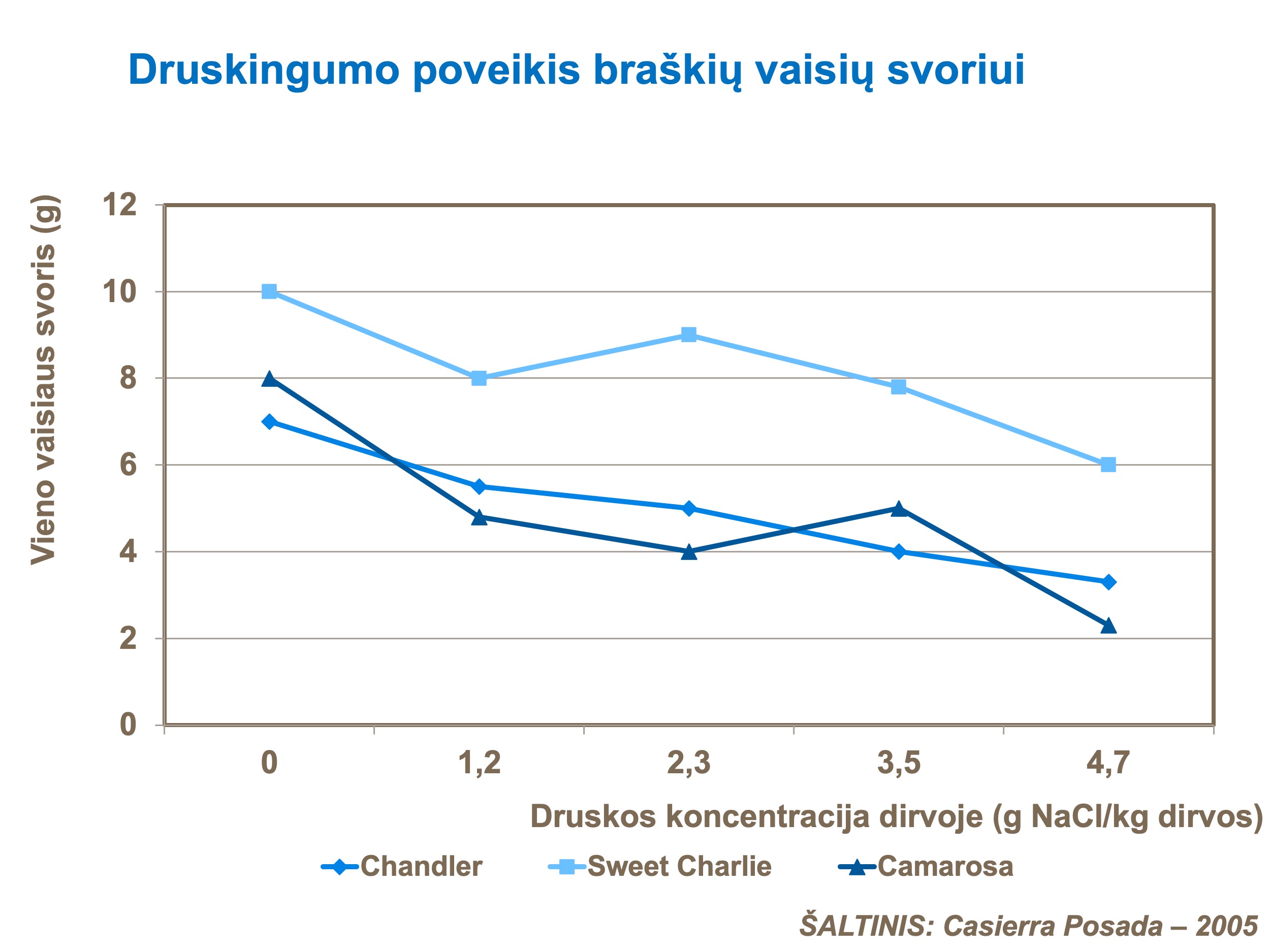Braškės yra itin jautrios druskingumui.