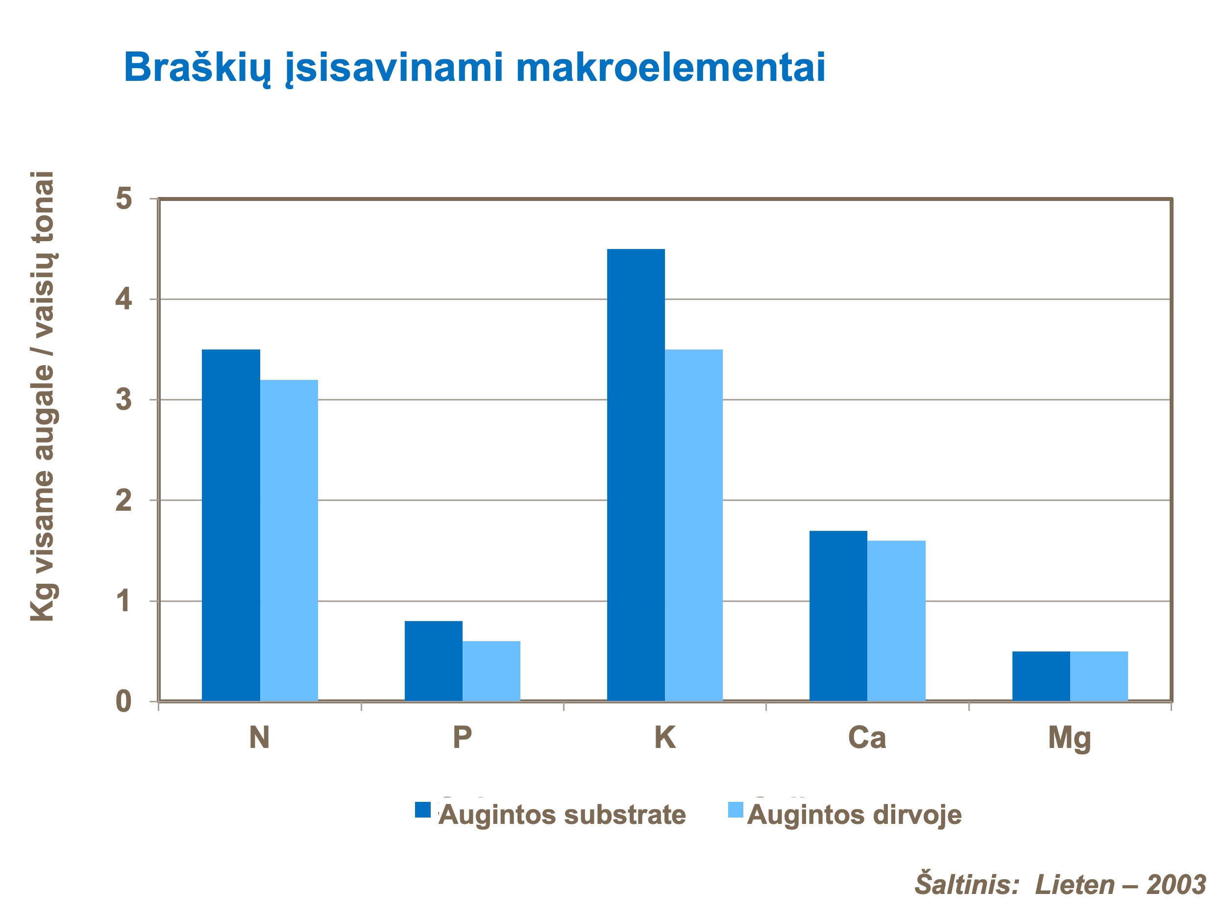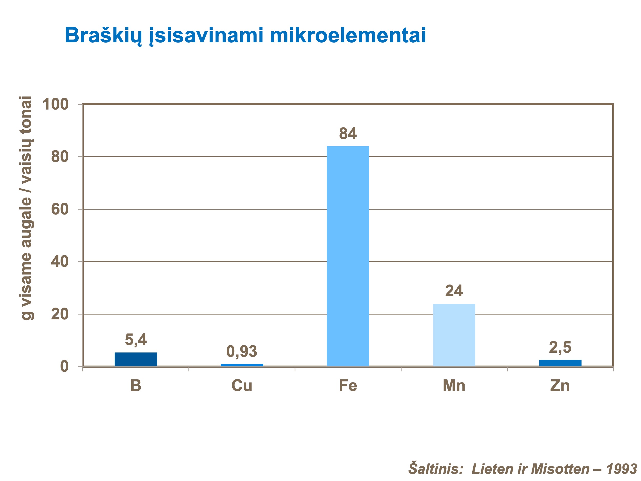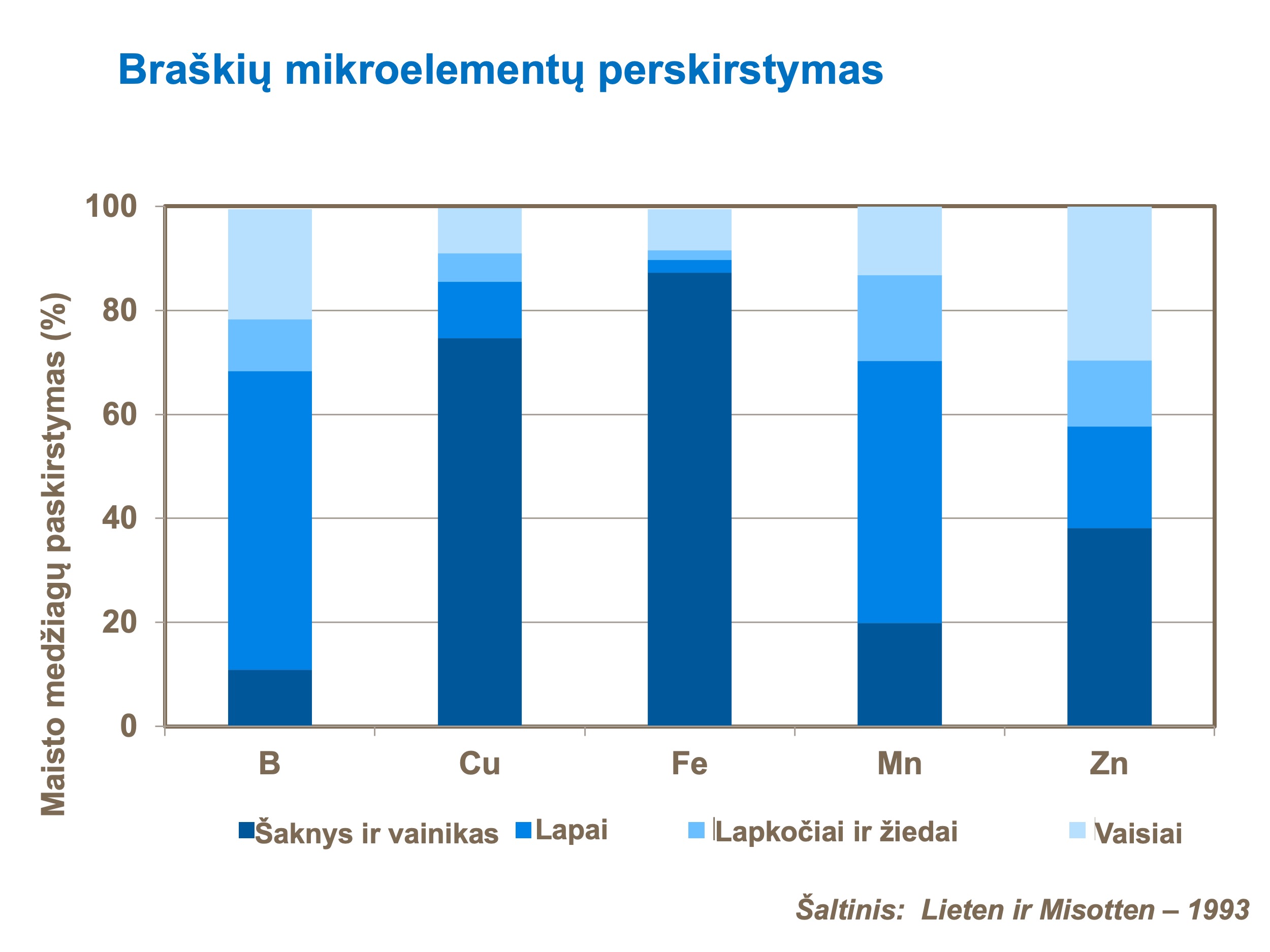 Nors mikroelementų reikia žymiai mažiau, tačiau jie turi įtakos augalų augimui, derliaus derėjimui ir vaisių kokybei. Didžiausiais kiekiais įsisavinami tokie mikroelementai kaip geležis ir manganas.