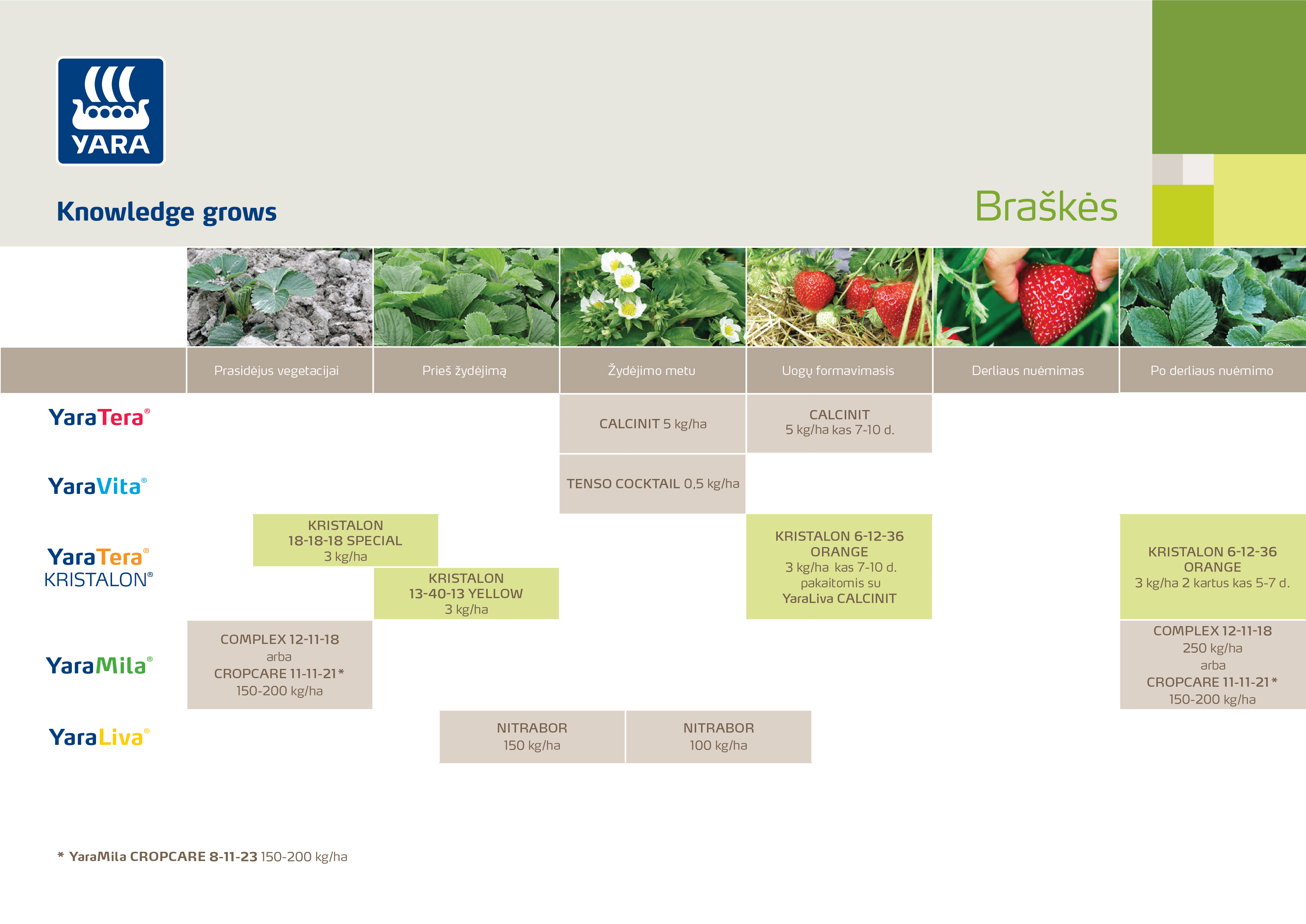 Mūsų tręšimo ekspertų nuodugniai parengta Yara braškių tręšimo technologija gali padėti jums pasiekti puikių rezultatų auginant braškių pasėlius.