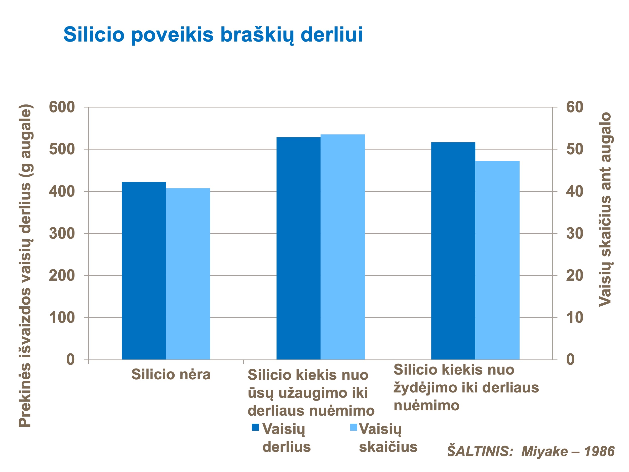 Silicio naudojimas nuo ūsų formavimosi fazės iki uogų skynimo laiko padidinti derlingumą padeda šiek tiek geriau, palyginti su jo naudojimu nuo žydėjimo fazės.