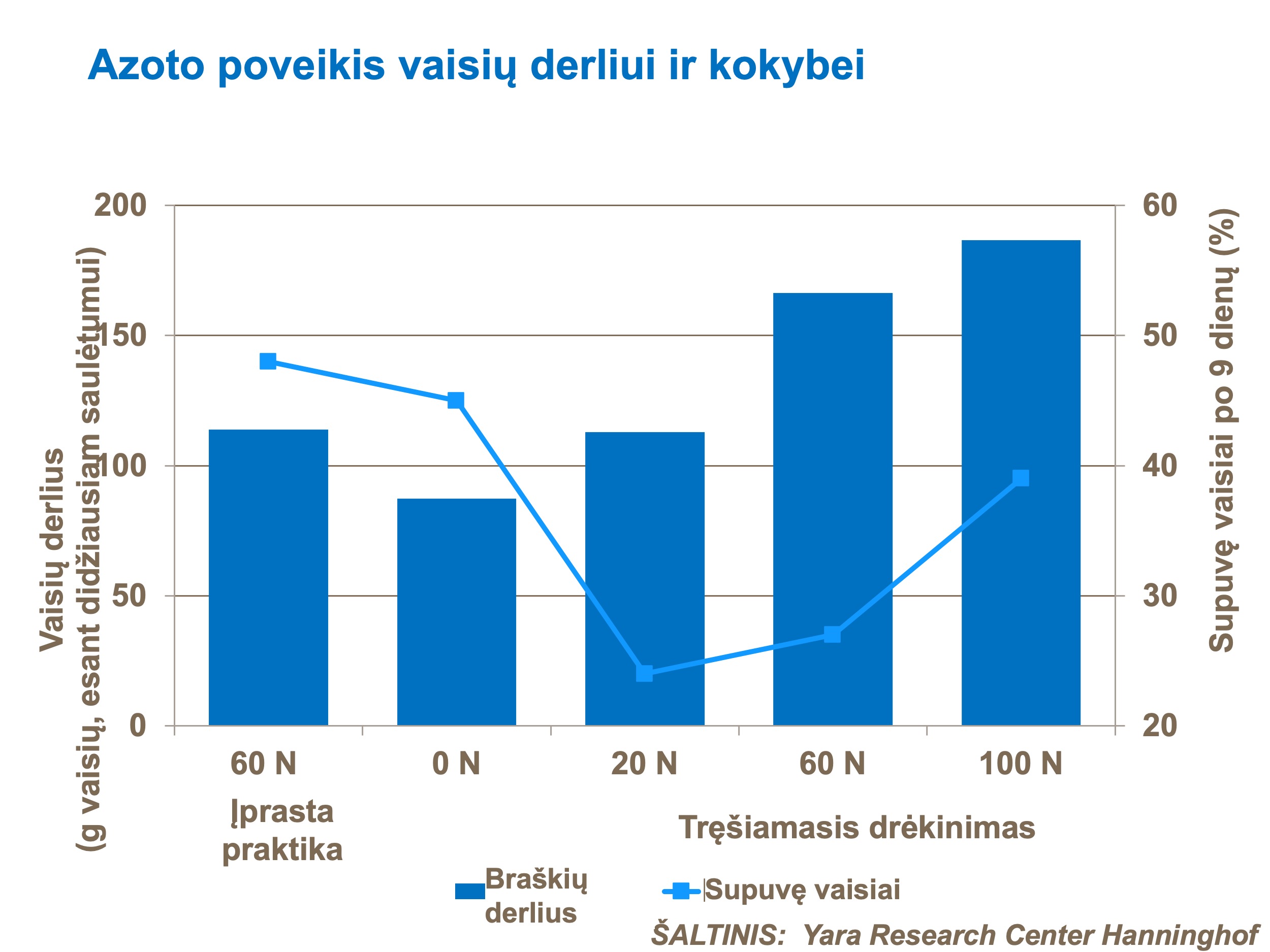 Įsisavinimo duomenys patvirtina, kad vienai tonai uogų reikia apie 3–3,5 kg azoto.