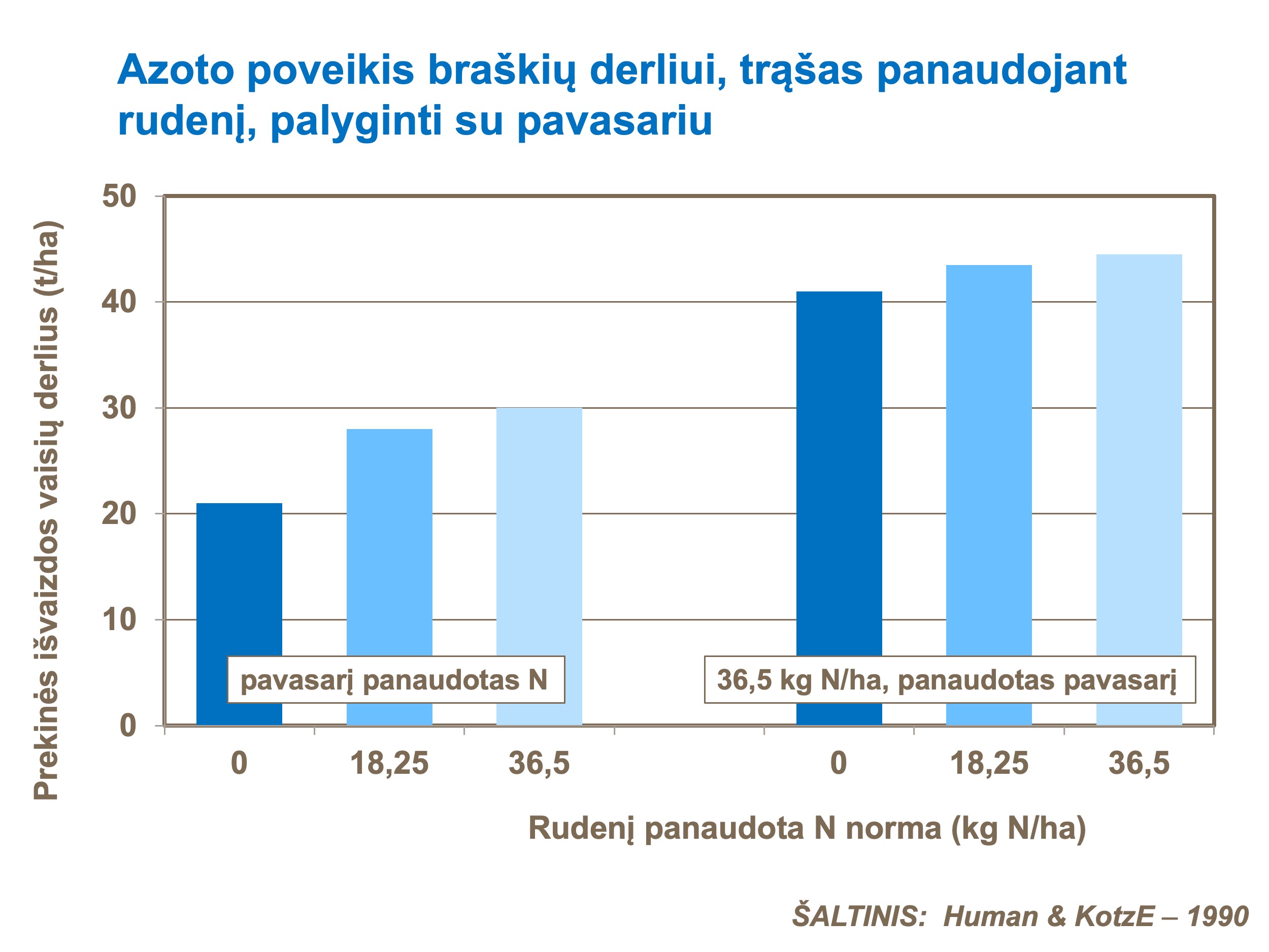 Tręšiant tik rudenį uogų vedimas pavasarį maksimaliai nepadidės. Norint kiek įmanoma labiau padidinti derlingumą, būtina azotu tręšti pavasarį, tačiau, jeigu rudenį trąšų norma buvo per maža, pavasarinis tręšimas jos nekompensuos.