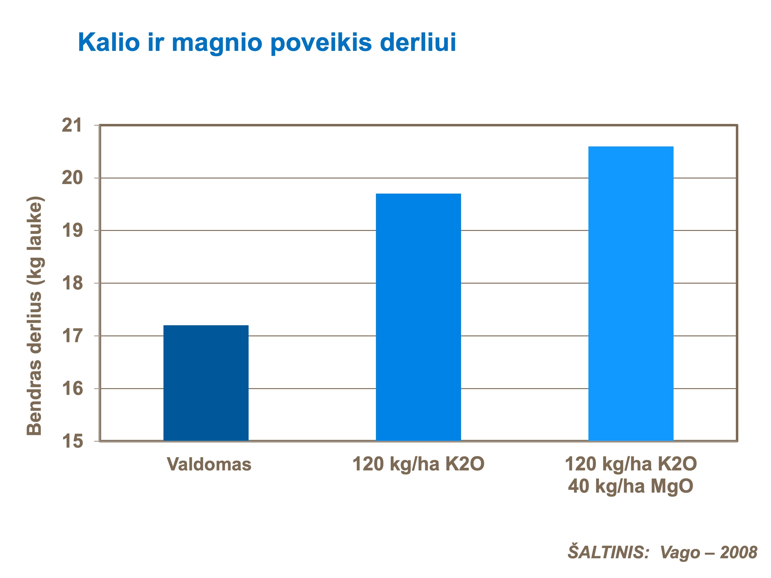 Tiek kalis, tiek magnis yra reikalingas daugeliui augalo procesų, todėl, jeigu kurio nors iš jų kiekis yra ribotas, tuomet ir derlingumas bus ribotas.