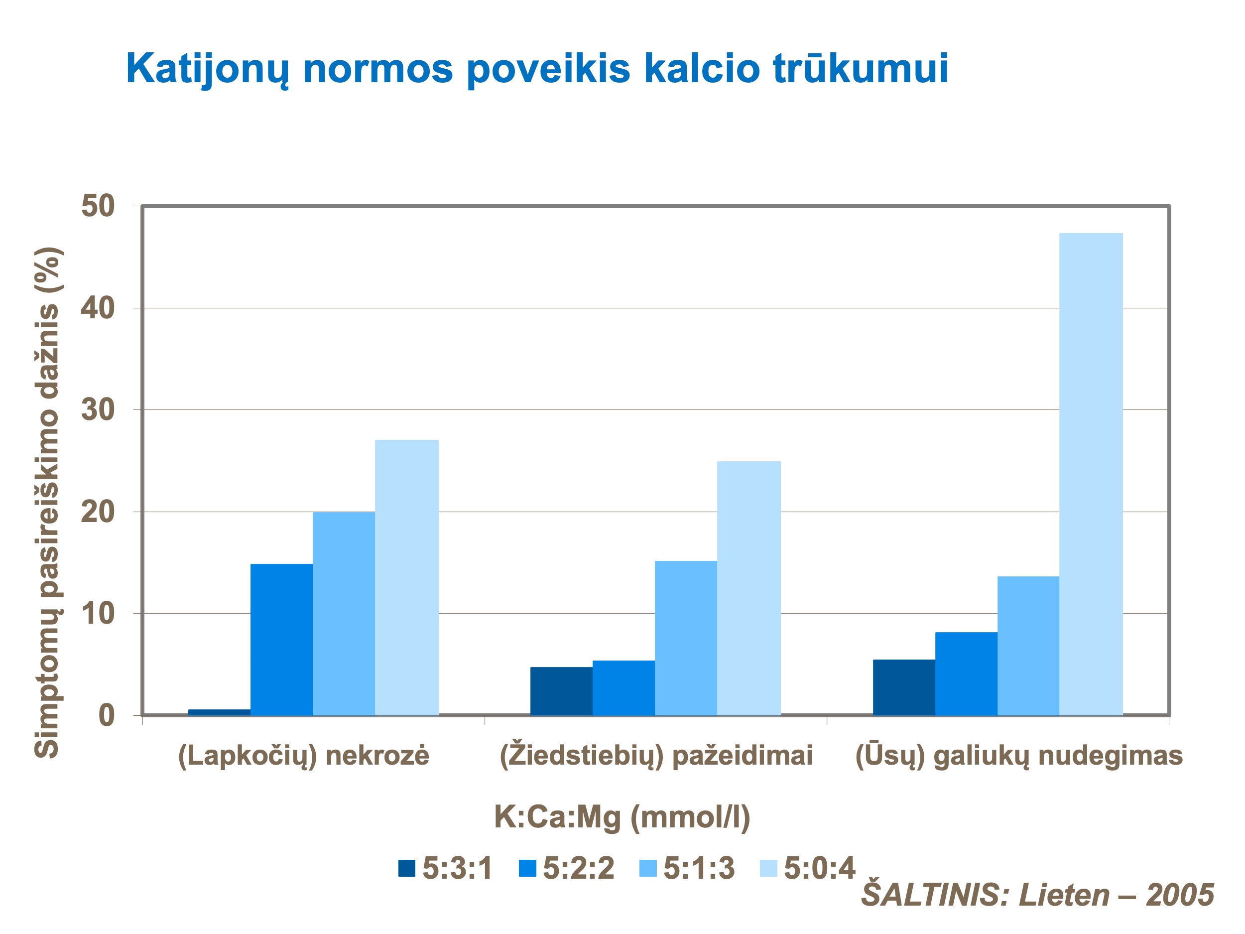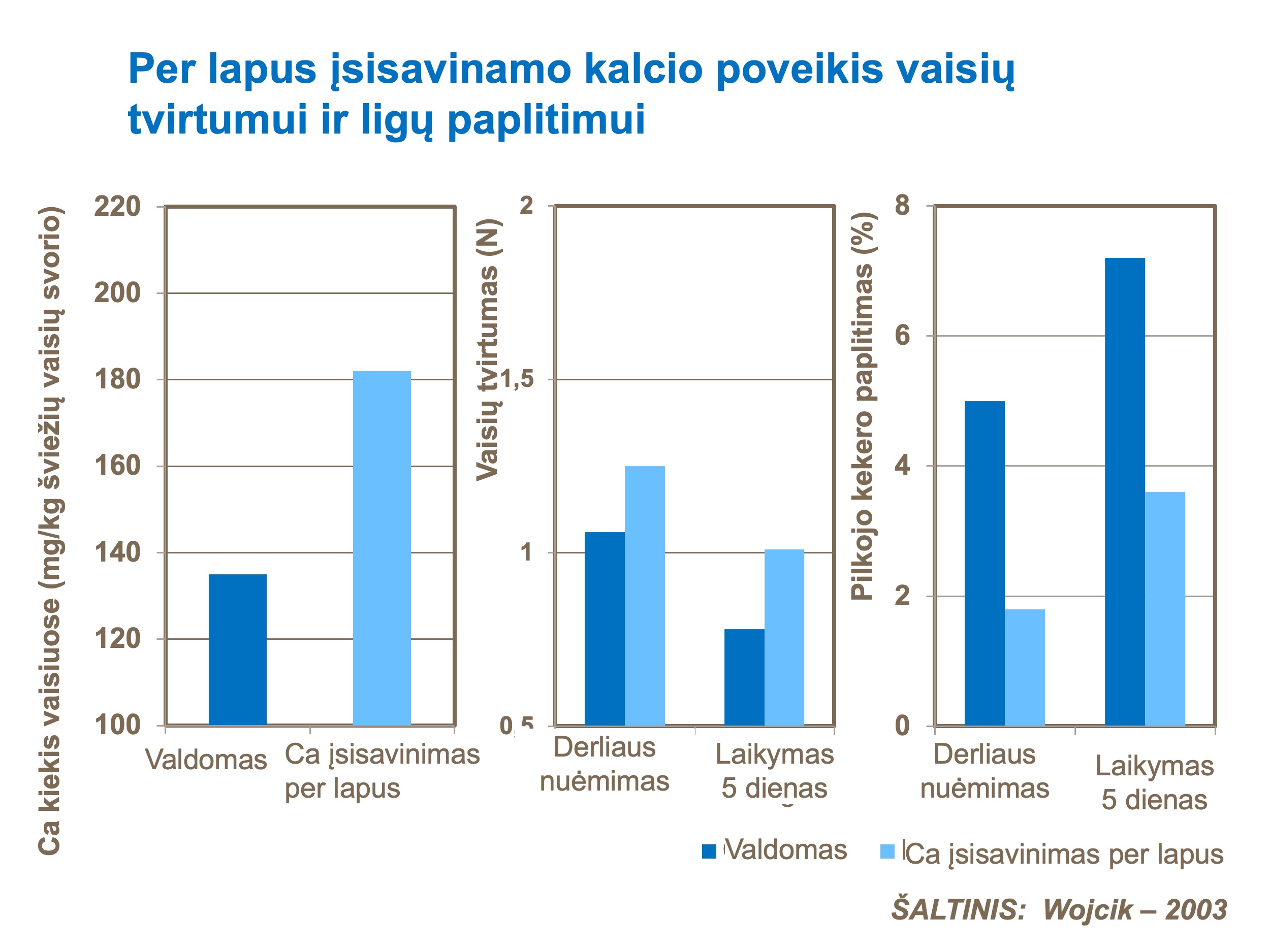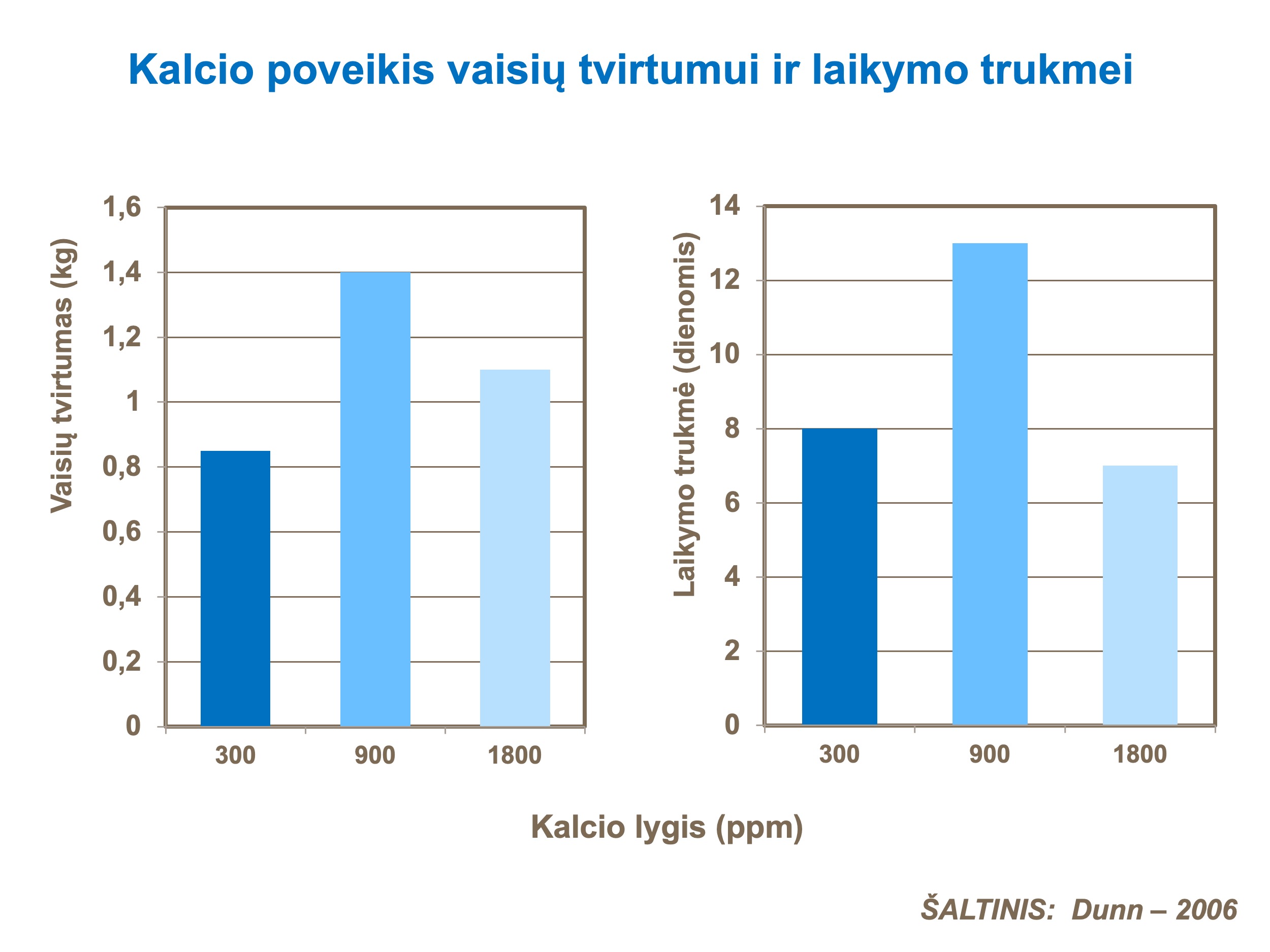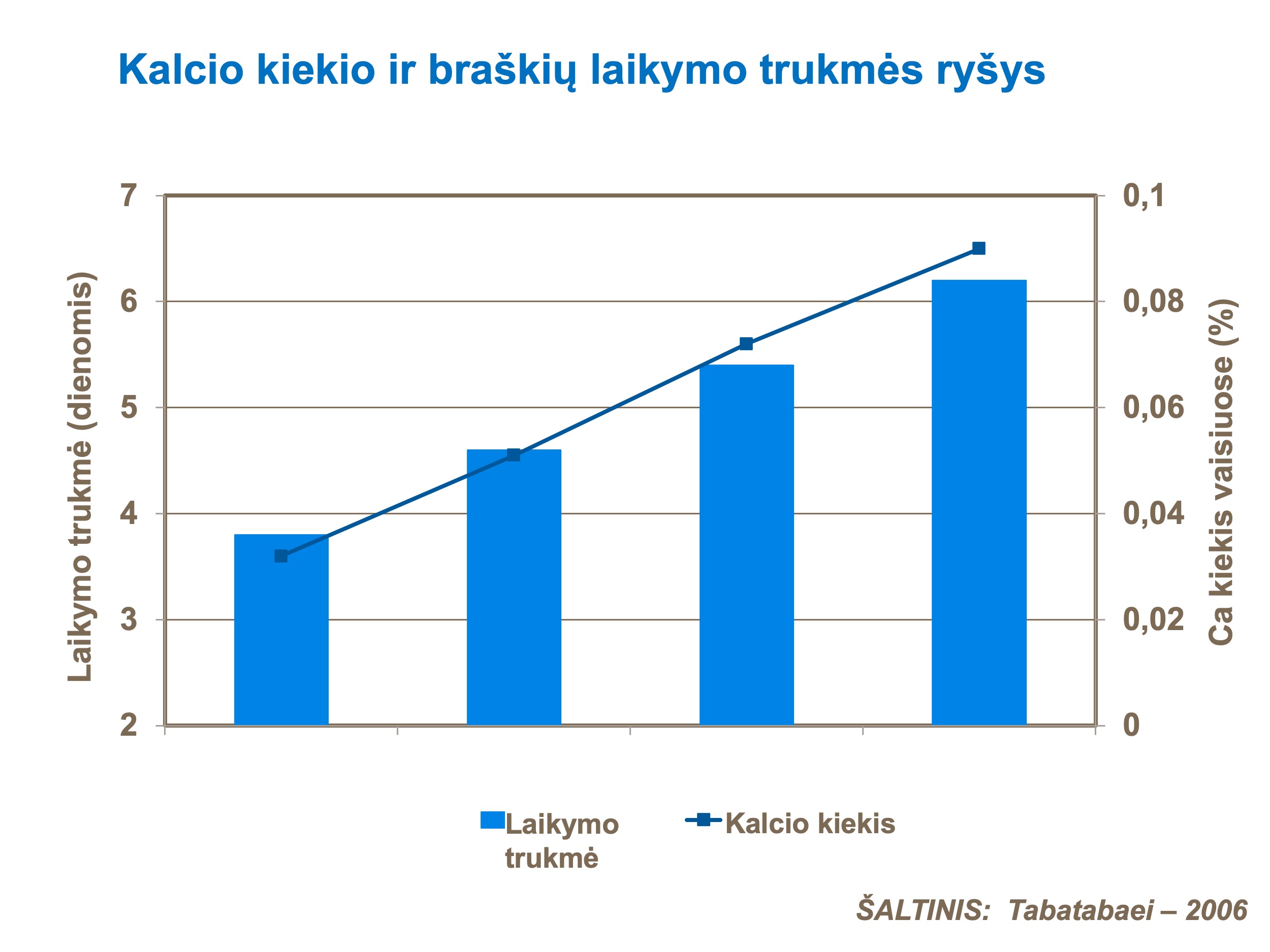 Bandymai rodo, kad kalcis padidina uogų tvirtumą ir kokybės išsilaikymą.