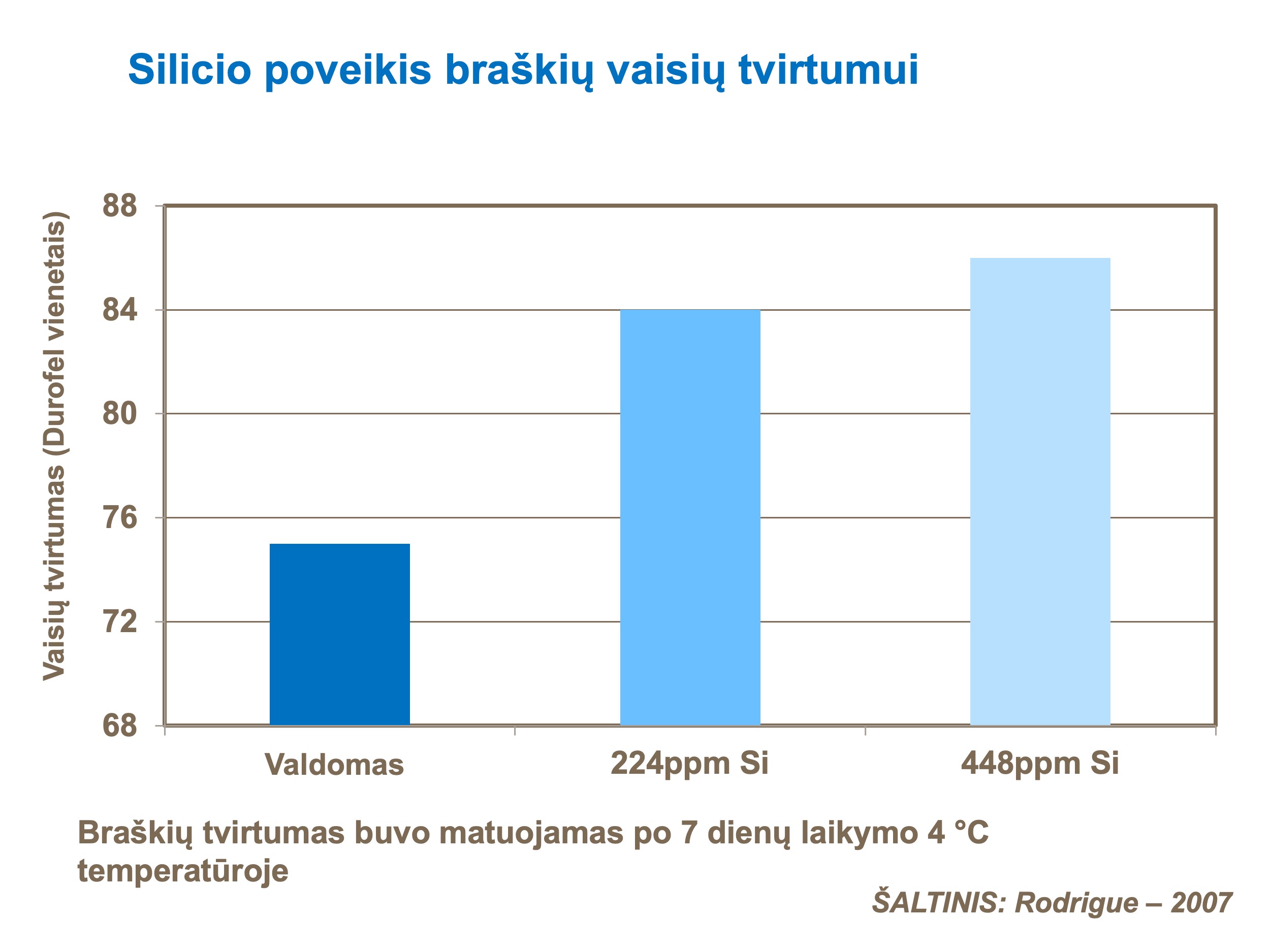 Silicis taip pat veikia uogų kokybę padidindamas jų tvirtumą, o kai kurios indikacijos gali pagerinti atsparumą ligoms. Silicio naudojimas gali pailginti tinkamumo vartoti terminą. Pagrindinė silicio nauda – jo vaidmuo sustiprinant ląstelių sieneles.