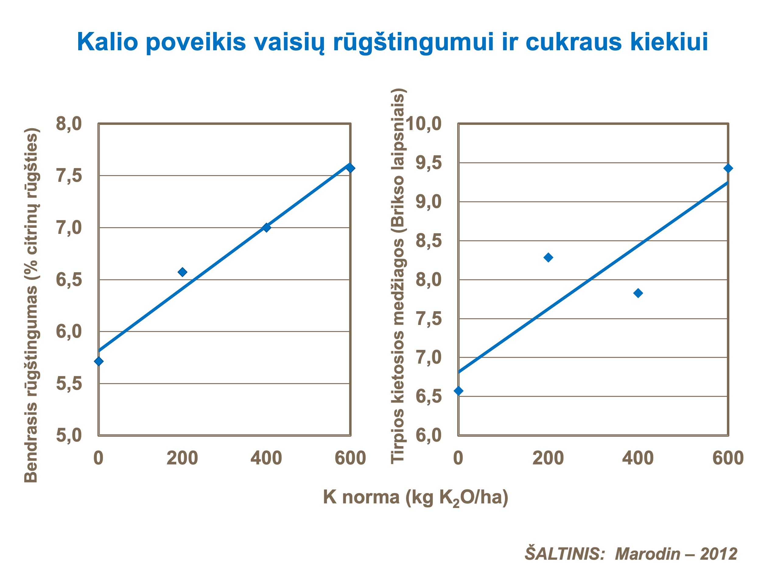Geras augalų maistinių medžiagų įsisavinimas užtikrins tinkamą vaisių augimą, ilgesnę jų laikymo trukmę ir puikų cukraus, rūgštingumo, gero aromato ir skonio balansą.