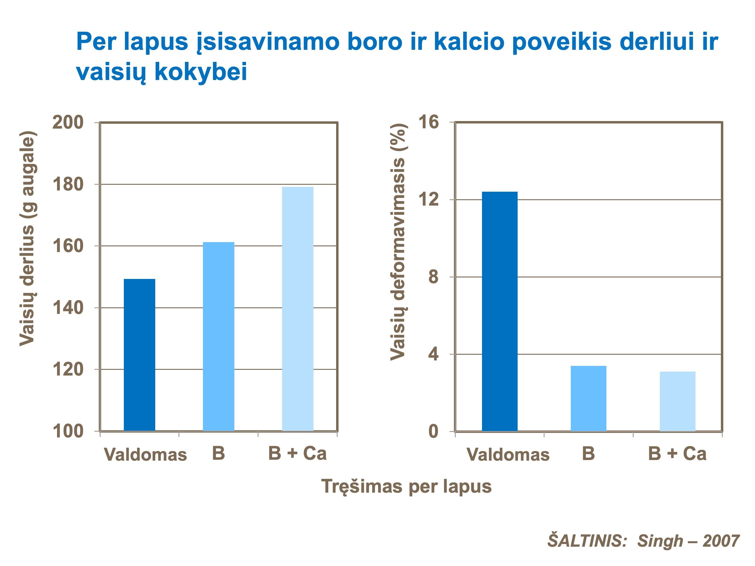 Boras atlieka esminį vaidmenį vaisių kokybės užtikrinimo srityje, todėl jo pritrūkus, užauga mažesni ir deformuoti vaisiai.