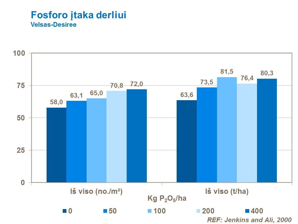 Tyrimų, atliktų Velse (Wales), rezultatai rodo, kad patręšus bulvių pasėlius fosforinėmis trąšomis, užauga gausesnis bulvių gumbų skaičius ir padidėja bendro derlingumo rodiklis.