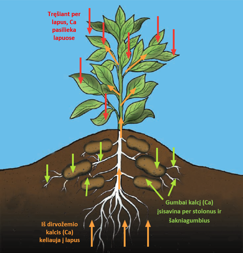 Taip pat, esant nepalankioms sąlygoms, kalcis padeda augalui prisitaikyti suaktyvindamas grandininę reakciją ištikus stresui. Jis taipogi atlieka svarbų vaidmenį, reguliuodamas aktyvų kalio perdavimą žiotelių atidarymui. Kalcis ypač veiksmingai padeda sumažinti vasaros karščių sukeltą stresą, sumažindamas augalo vytimą ir žalą lapams. Buvo užregistruota, kad tokiais atvejais kalcis padeda 30% pagerinti bulvių pasėlių derlingumą.