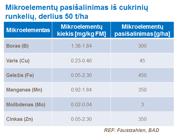 Pripažinta, kad cukrinių runkelių poreikis mikroelementams, ypatingai borui, manganui, variui ir cinkui yra labai didelis.
