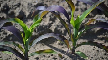Tamsiai žali, purpuriniais pakraščiais augalo lapai ir stiebai, tikriausiai dėl antocianinų susikaupimo, yra fosforo trūkumo kukurūzų pasėliams požymiai. Šie požymiai būna žymiai ryškesni, jei pasėliai auga drėgnose ir šaltose dirvose.