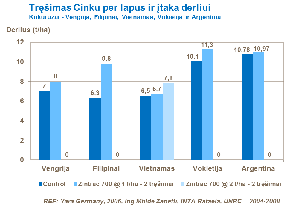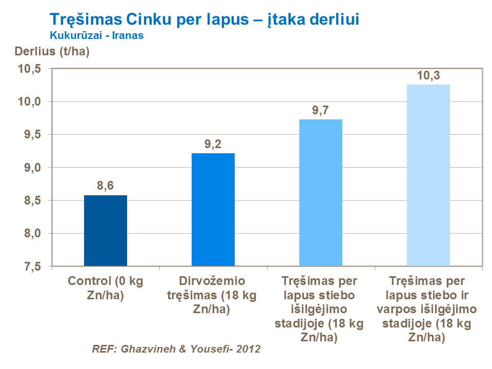 Kaip rodo daugelio atliktų tyrimų rezultatai, cinkas, dėl operatyvaus ir efektyvaus poveikio augalams, labiausiai įtakoja pasėlių derlingumą. Labai stiprus ir efektyvus poveikis pasireiškia pasėliams, kai cinku apdorojamos sėklos, kadangi cinko poveikyje anksti pradeda vystytis šaknų sistema, taip pat, cinkas skatina ūglių / stiebo augimą ir lapų vystymąsi. Tačiau, rezultatai rodo, kad efektyvesnis poveikis pasėlių derlingumui būna tada, kai jie tręšiami lapų trąšomis su cinku.