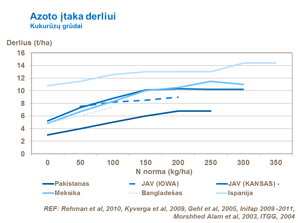 Azotas yra svarbi maisto medžiaga augalų augimui ir vystymuisi, kadangi yra viena iš pagrindinių medžiagų, įeinančių į baltymų sudėtį. Praktika rodo, kad didžiausią kukurūzų pasėlių derlingumą užtikrina pasėlių tręšimas azoto normomis, siekiančiomis 200-250 kg/ha. Tik pakankamai didelės tręšimo normos gali užtikrinti optimalų augalų augimą ir vystymąsi. Kai pasėliams trūksta azoto, susiformuoja trumpos, nedidelės burbuolės ir, atitinkamai, grūdų burbuolėje būna nedaug, o patys grūdai smulkūs