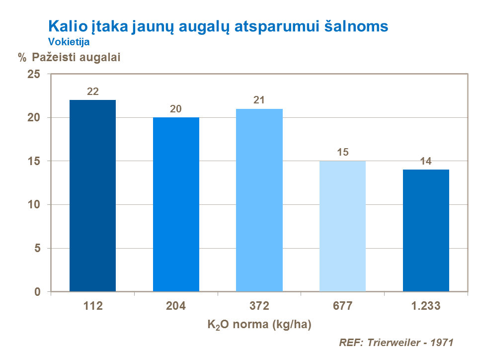 Kalis turi įtakos sumažinti šalčio bei šalnų padaromus nuostolius, kadangi padeda ląstelėms aklimatizuotis vidiniame ląstelių lygmenyje ir sumažina kukurūzų ląstelių plyšimo riziką. Šiuolaikinės hibridinės kukurūzų veislės yra gana atsparios šalčiui bei šalnoms. Tačiau, nors šalnos gali smarkiau pažeisti jaunus augalus, paprastai, šalnų pasireiškimo laikotarpyje, pasėlių augimo taškas dar būna po dirvos paviršiumi, kol augalai pasiekia V5 organogenezės etapą (apie 25-30 cm aukščio), todėl augalų nuostoliai būna nelabai reikšmingi. Lapų audinių netekimas ar jų žuvimas virš augimo taško tolesniam augalų augimui ir vystymuisi, taip pat ir derlingumui, didelės įtakos neturi, todėl, ankstyvose augimo stadijose žala pasėliams, palyginti, nedidelė.