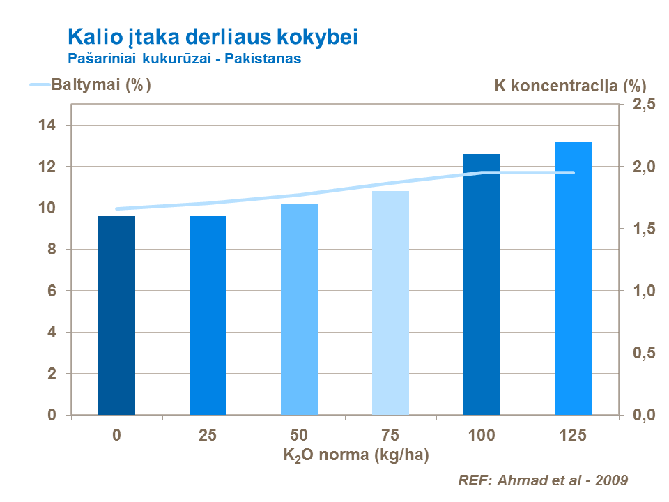 Tinkamai tręšiant kukurūzų pasėlius kalio trąšomis, padidėja žaliavinių baltymų kiekis pašariniuose kukurūzuose. Yra įrodymų, kad boras padidina krakmolo kiekį pašarams auginamuose kukurūzuose ir tokiu būdu padidina pašarinių kukurūzų energetinę vertę.