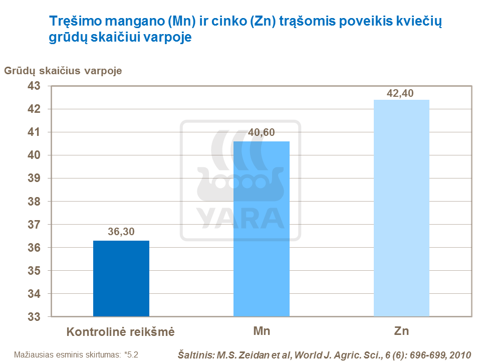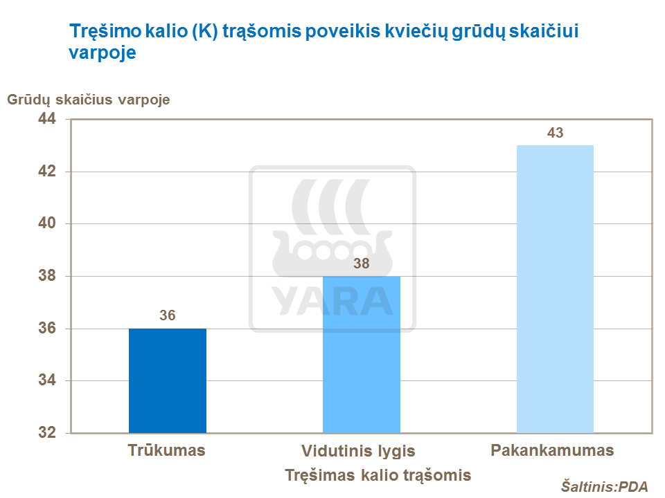 Bendras grūdų skaičius priklauso nuo produktyvių ūglių skaičiaus ploto vienetui ir nuo grūdų skaičiaus varpoje. Augintojas turi protingai apskaičiuoti mitybos elementų, turinčių įtakos grūdų skaičiaus padidėjimui varpoje, normas.