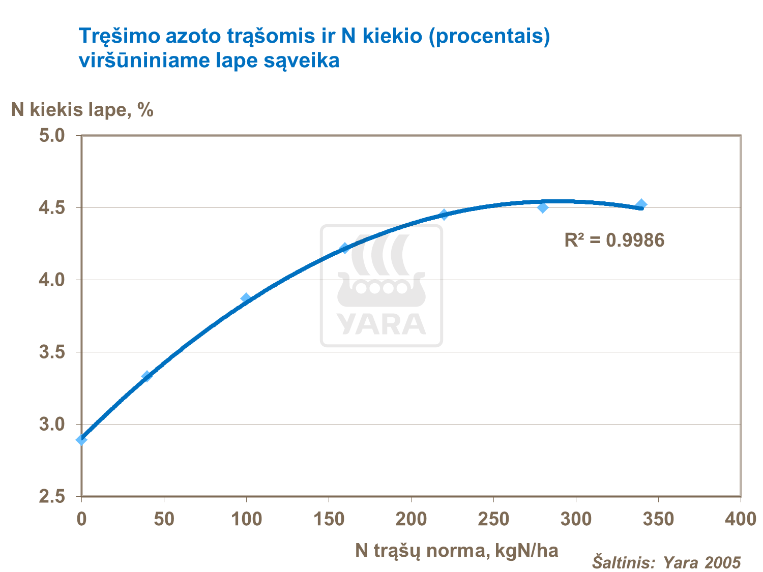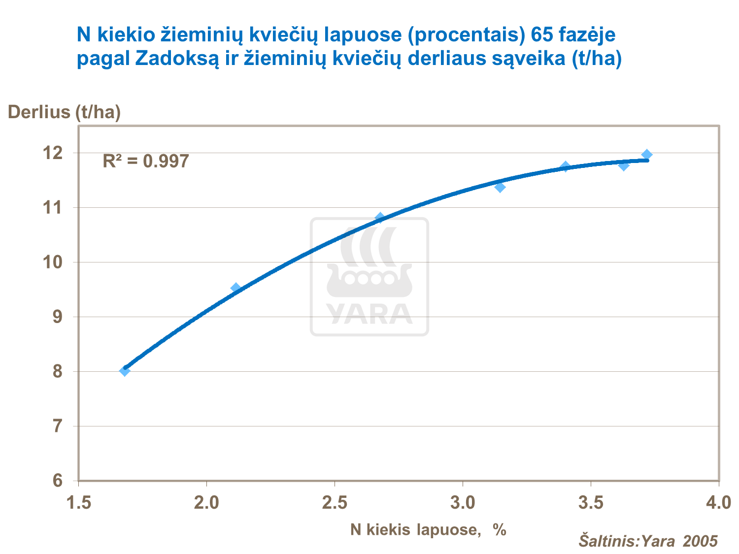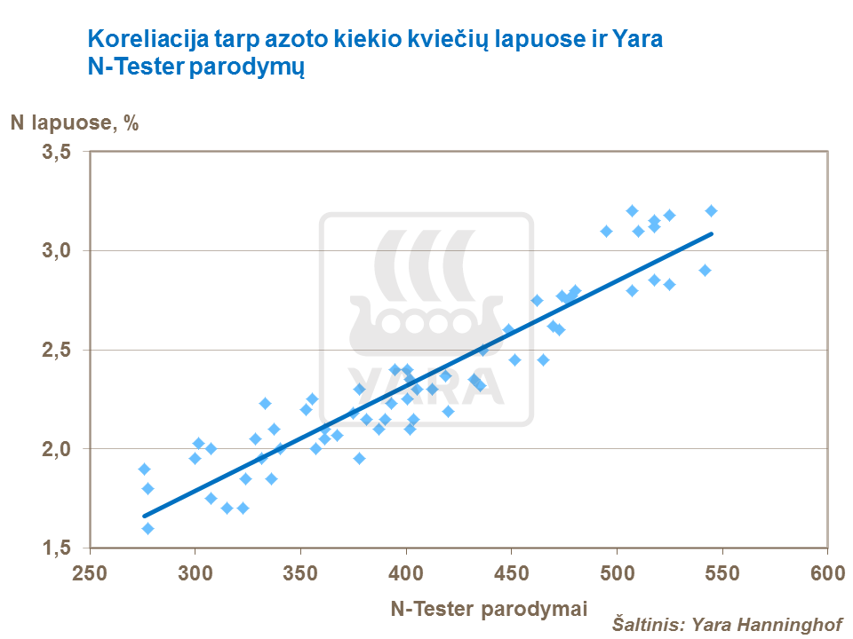 Azoto lygio išlaikymas lapuose 65 fazėje pagal Zadoksą suteikia optimalų derlių.
