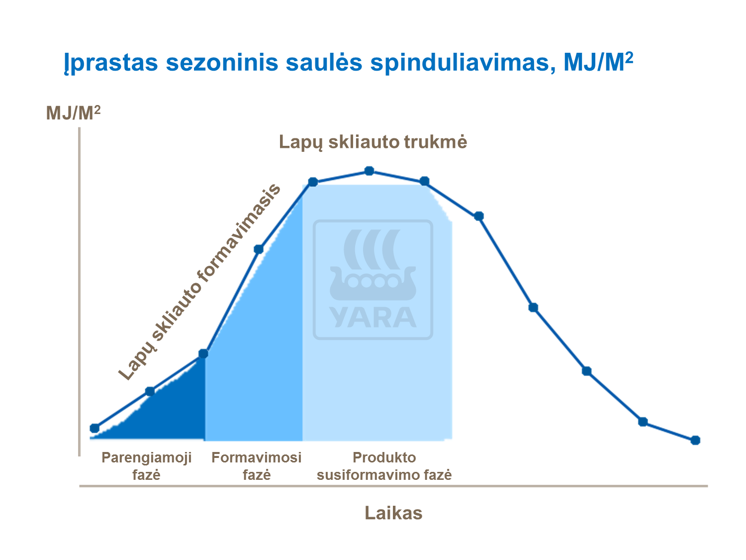 Šis paprastas ryšys yra kviečių auginimo agronominių principų kūrimo pagrindas. Kad saulės spinduliavimas būtų efektyviai sugertas, reikalingas pakankamai tankus (bet ne per tankus) lapų skliautas iš sveikų žalių lapų, kurie sugertų 90% gaunamo PAR. Augalų lapai turi išlikti žali ir sveiki viso grūdų pildymosi tarpsnio metu. Vadinasi, yra du uždaviniai: