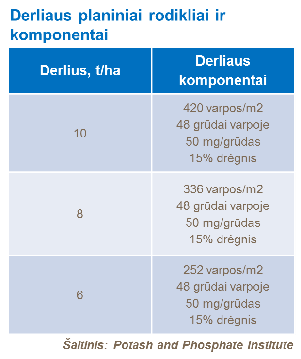 Grūdų formavimosi, pildymosi ir brendimo tarpsniais kviečių augalams yra reikalingi sveiki žali lapai, kad bręstantys grūdai būtų nepertraukiamai aprūpinami fotosintezės produktais. Siekiant maksimaliai padidinti produktyvių varpų skaičių, naudinga pasėlius patręšti. Azoto kiekį lapuose reikia išsaugoti iki žydėjimo tarpsnio pradžios. Be to, reikia atminti, kad optimalaus derlingumo užtikrinimui yra reikalingos tokios maisto medžiagos kaip fosfatai, magnis ir boras.