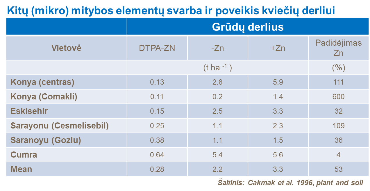 Nežiūrint į tai, kad reikalingi mikroelementų kiekiai yra nedideli, jų trūkumas gali turėti didelį neigiamą poveikį kviečių derlingumui. Tręšiant pasėlius netinkamu efektyviam mitybos elementų pasisavinimui laiku, kyla pavojus, kad mitybos elementai bus prarasti juos išplovus gruntiniams vandenims arba jiems išgaravus.