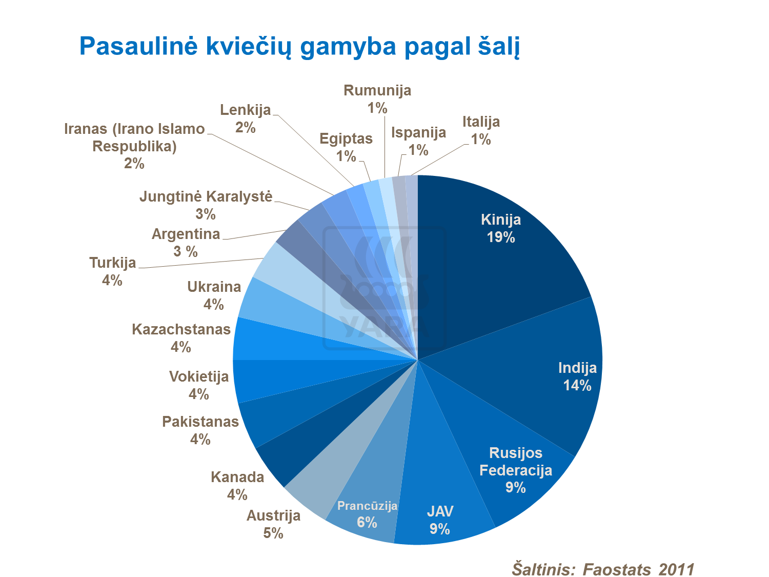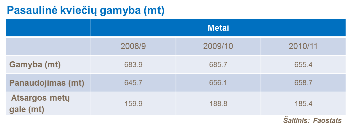 Kinija yra stambiausia kviečių augintoja pasaulyje. Atsargos metų gale šioje šalyje sudaro apie 130 mln. tonų; antrą vietą užima Indija su 90 mln. tonų rodikliu, o trečioje vietoje yra JAV ir Rusijos Federacija su 60 mln. tonų atsargų metų gale kiekvienoje iš šių šalių.