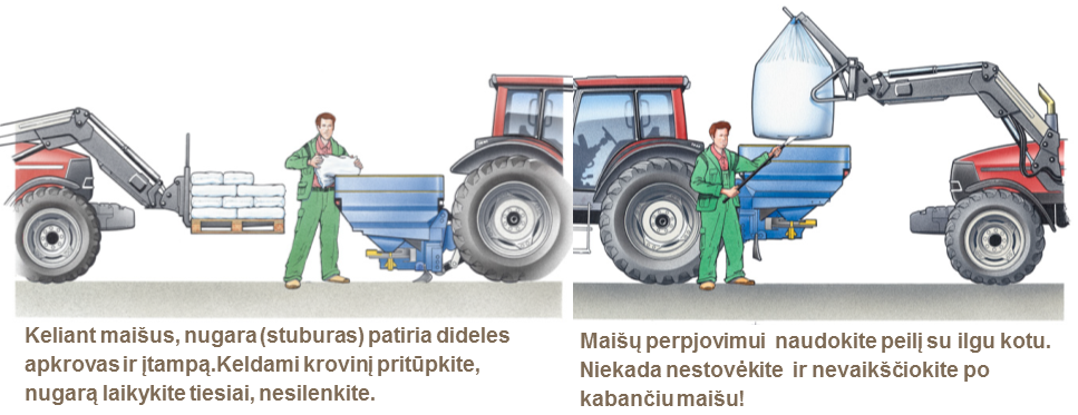 - Keldami ar nešdami krovinį, stenkitės nesisukinėti ir nesilenkti į šoną.