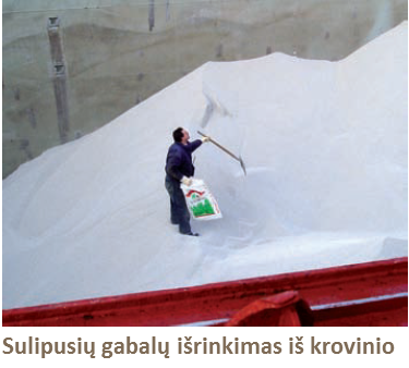 - Prieš pradėdami iškrovimą, apžiūrėkite krovinį, patikrinkite liukų apytvarus ir krovinio paviršių. Jei produktas yra pažeistas (užterštas/pateko vandens), iškvieskite inspektorius ir apie tokį sprendimą informuokite laivo kapitoną.