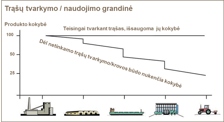 Kol trąšų produktai pasiekia galutinį vartotoją, jiems tenka pereiti daugybę etapų ir patirti mechaninio pobūdžio stresus. Labai svarbu, kad per visus produkto tiekimo galutiniam vartotojui etapus, produktas išliktų kokybiškas ir tinkamas tiesioginiam naudojimui, kad jo kokybė neturėtų įtakos pasėlių derlingumui.