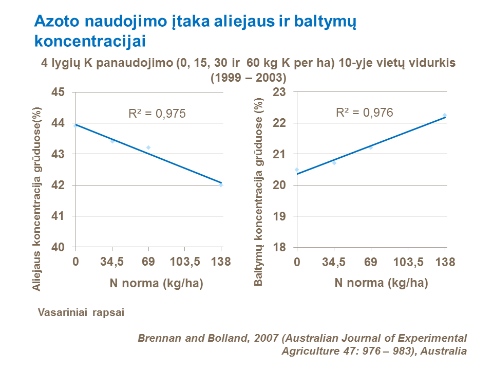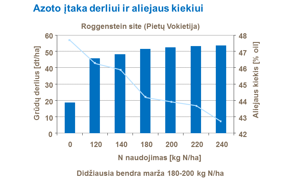 Žieminių rapsų pasėliai absorbuoja azoto tirpalą nitrato pavidalu. Bandymų metu, kontroliuojamomis sąlygomis paaiškėjo, kad tręšiant pasėlius karbamidine (karbamidu) ar amoniakinio (amonio sulfatu) azoto forma, lyginant su išskirtinai nitratu ar amonio nitratu, azoto veiksmingumas bei efektyvumas buvo mažesnis, ko pasėkoje lėčiau augo ir vystėsi šaknys ir antžeminė augalo dalis, atitinkamai 75% ir 50%.
