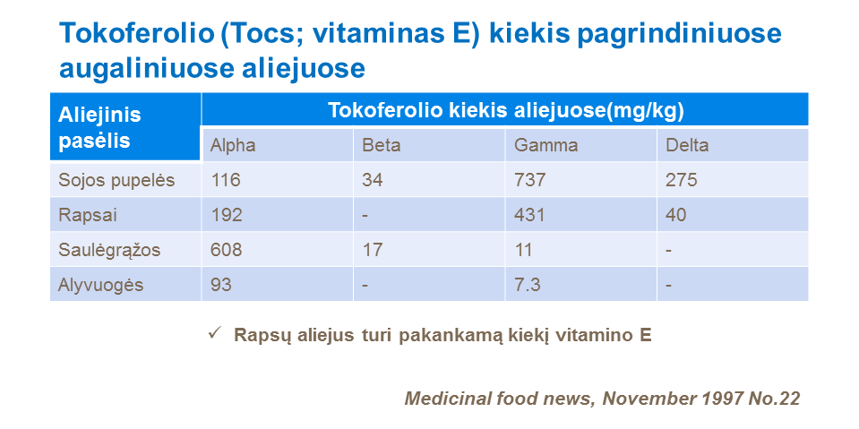 Rapsų aliejaus sudėtyje yra pakankamas kiekis tokoferolio, t.y vitamino E.
